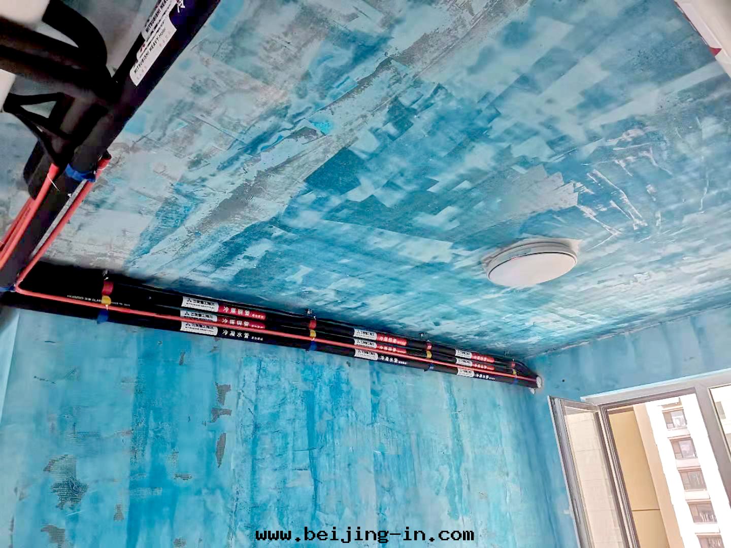 室(shì)外(wài)機(jī)外(wài)牆(qiáng)套管(guǎn)已经安(ān)裝(zhuāng)完畢