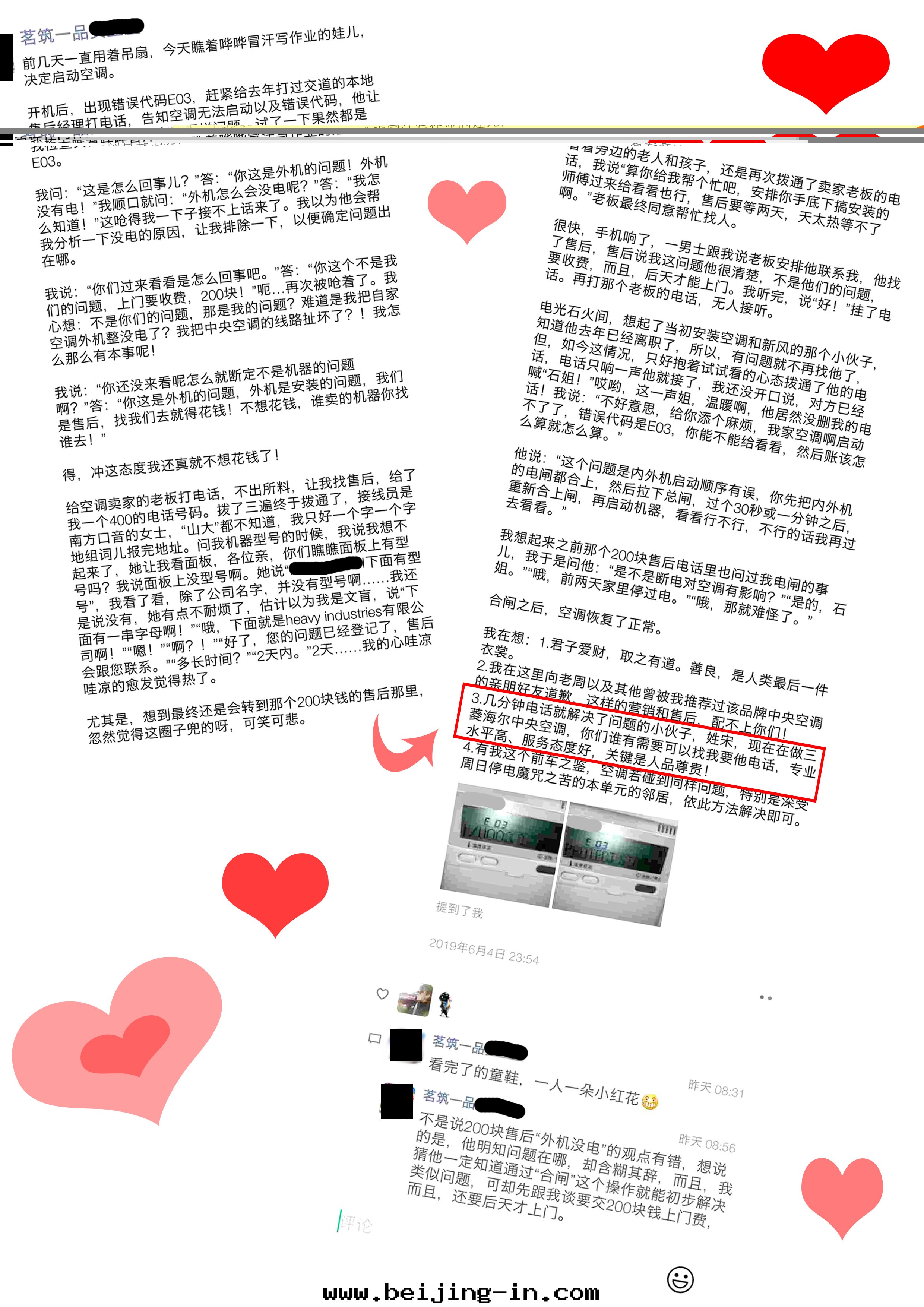 原来(lái)的(de)一(yī)位(wèi)客戶,人(rén)很親切(qiè),早(zǎo)年(nián)間(jiān)讓我(wǒ)们(men)安(ān)裝(zhuāng)的(de)中(zhōng)央空(kōng)調,后来(lái)因(yīn)为(wèi)我(wǒ)的(de)个人(rén)原因(yīn),工作(zuò)出(chū)現(xiàn)了(le)變(biàn)動(dòng),離開(kāi)了(le)原来(lái)的(de)公(gōng)司。这(zhè)个姐姓石(dàn),去年(nián)冬天(tiān)聯系(xì)到(dào)了(le)我(wǒ)一(yī)次(cì),因(yīn)为(wèi)機(jī)器的(de)制热(rè)效果不大(dà)理(lǐ)想(xiǎng),石(dàn)姐讓我(wǒ)过(guò)去給(gěi)處(chù)理(lǐ)一(yī)下(xià)。我(wǒ)向石(dàn)姐了(le)解(jiě)情(qíng)況后,建议石(dàn)姐先(xiān)找(zhǎo)售后進(jìn)行解(jiě)決,如(rú)果那(nà)邊(biān)不及时(shí)或(huò)者(zhě)不合理(lǐ)的(de)話(huà),在(zài)給(gěi)我(wǒ)打(dǎ)電(diàn)話(huà)。畢竟不做原来(lái)的(de)品牌(pái),一(yī)些(xiē)事(shì)情(qíng)还是(shì)想(xiǎng)着先(xiān)協商廠(chǎng)家(jiā),以(yǐ)免引起(qǐ)不必要的(de)誤会(huì)。那(nà)次(cì)我(wǒ)告訴石(dàn)姐,我(wǒ)離開(kāi)了(le)原来(lái)的(de)公(gōng)司,不过(guò)人(rén)雖(suī)離開(kāi),有事(shì)还是(shì)可(kě)以(yǐ)找(zhǎo)我(wǒ),畢竟空(kōng)調是(shì)我(wǒ)負責安(ān)裝(zhuāng)的(de),相識就(jiù)是(shì)缘分(fēn)。